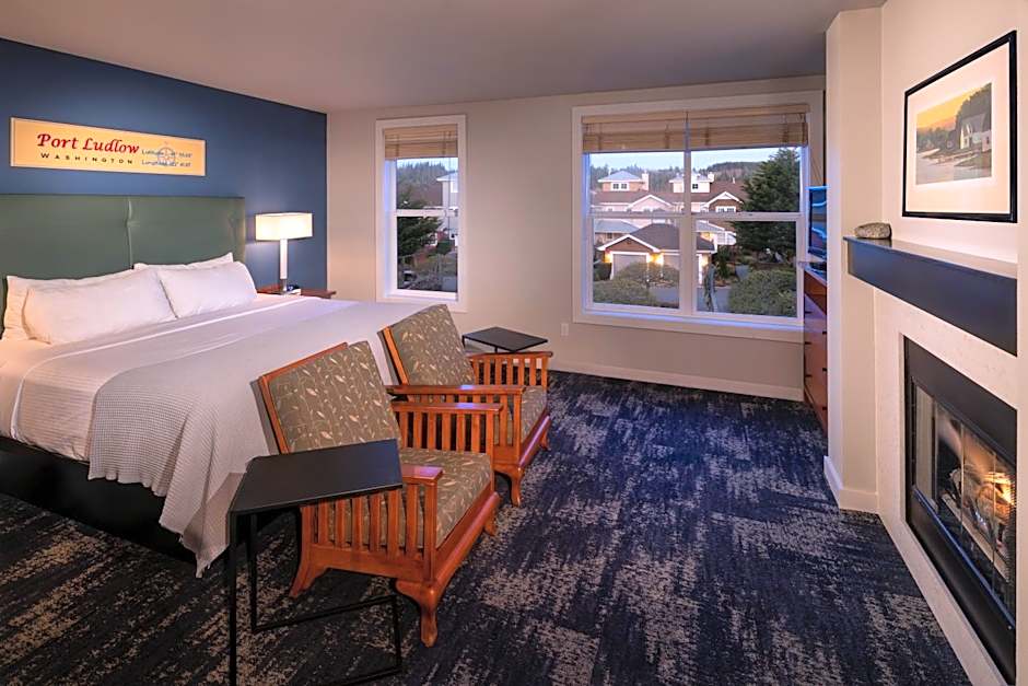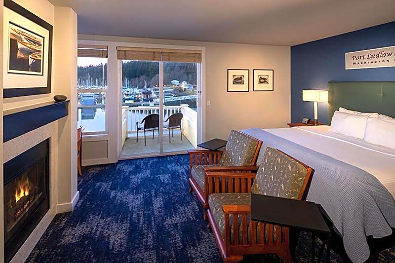 Get ready for the ultimate getaway! Our oversize rooms are designed for your comfort and relaxation, featuring luxurious plush robes, jetted tubs for the perfect soak, and cozy gas fireplaces to unwind after a day of adventure. Indulge in hand-crafted bath amenities, enjoy the convenience of an in-room refrigerator, and savor locally sourced coffee to start your day off right. Perfect for couples! These rooms sleep 2 guests and offer stunning views or partial views of the Marina and Ludlow Bay, creating an beautiful backdrop for your stay. Some rooms are also pet-friendly—just let us know when booking if you'd like to bring your furry companion along! Come experience comfort, charm, and a touch of luxury with a view!